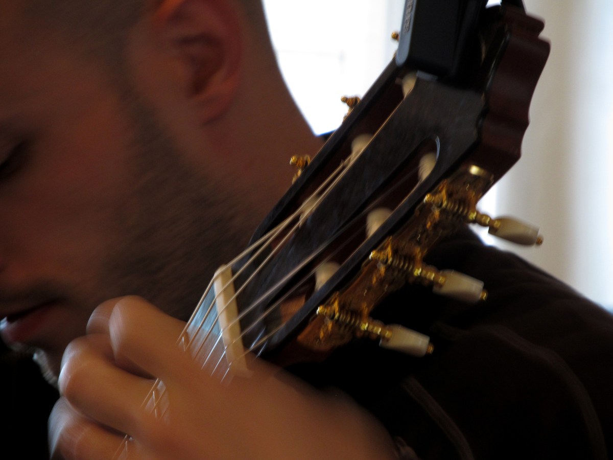 ASSIGNMENT #4 PERSPECTIVE 203 SPRING 2012 Previous Next Published January 4, 2013 at 4000 × 3000 in Photojournalism Portfolio (Spring Semester 2012) Lars Rosvoll, a UA graduate student, practices his guitar at the Slonaker Honors College. Rosvoll will play the piece at an upcoming recital. (Photograph by Kayla Samoy) Detail Shot